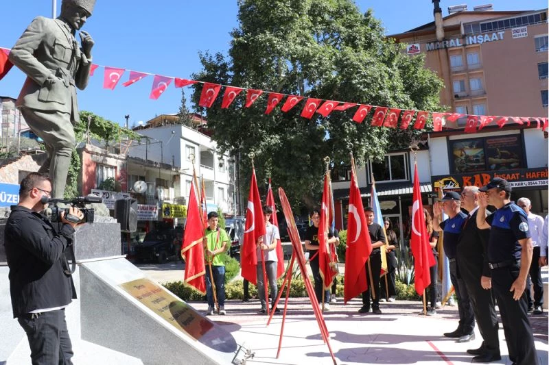 Pozantı Kaymakamı Fatih Karamahmut ve Belediye Başkanı Mustafa Çay, ilçe merkezindeki Atatürk Anıtı'na çelenk sundu.