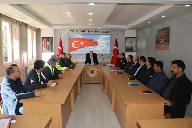 İçişleri Bakanlığı'nın "Kış Mevsiminde Alınacak Trafik Tedbirlerine" ilişkin genelgesi doğrultusunda Pozantı Kaymakamlığı Toplantı Salonu'nda, Kaymakam Fatih Karamahmut başkanlığında toplantı gerçekleştirildi.