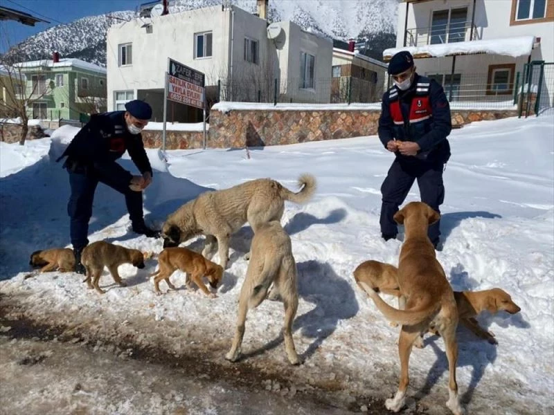ADANA - Adana'nın Pozantı ilçesinde polis ve jandarma, kış mevsiminde yiyecek bulmakta zorlanan sokak hayvanları için belirli alanlara mama ve yem bıraktı.