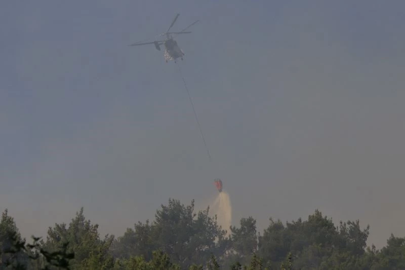 Helikopterlerin dışında, bir uçak, 53 arazöz, 18 su tankı ve iş makinaları da yangına karadan müdahalesi devam ediyor.
