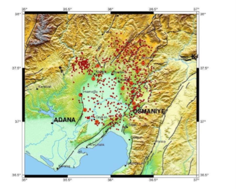Kadirli merkez alındığında 50km.’lik yarıçaplı alan içerisinde büyüklüğü M>3.0 olan depremler analiz edildiğinde, son yüzyılda bölgede toplam 729 deprem meydana gelmiştir. Bu depremlerinde genel olarak Kadirli ve Sumbas’ın kuzeydoğusunda ve batı-kuzeybatısında yoğunlaştığı görülmektedir. Ayrıca deprem etkinliği Kadirli’nin güney-güneydoğusunda ve Çukurova havzası boyunca güneyde Adana-Ceyhan’a doğru olan fay parçalarında yoğunlaştığı gözlenmiştir.