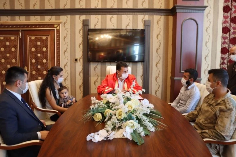 Aile yakınlarının da katıldığı nikah töreni sonrasında Kaymakam, Belediye Başkanı ve Jandarma Komutanı genç çifte altın hediye ettiler.