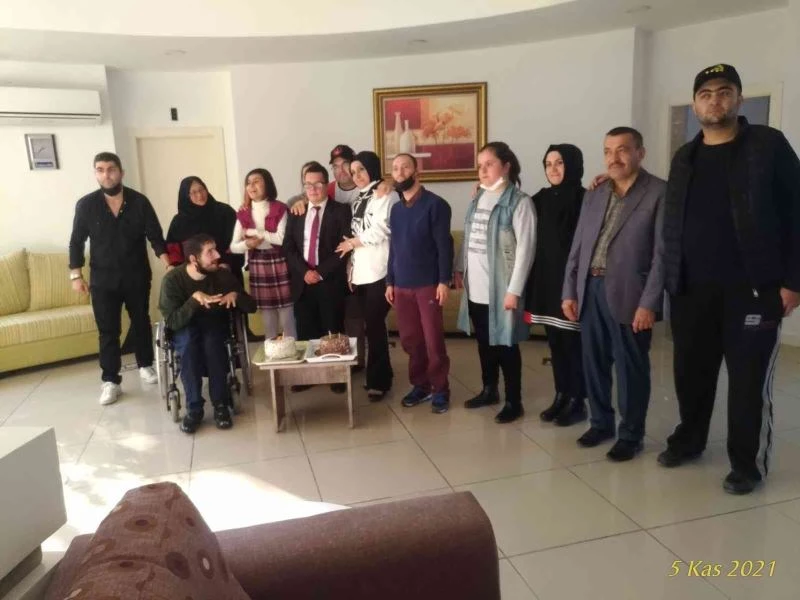 Engelliler Sosyal Tesisinde kendisi için hazırlanan doğum günü pastasını görünce şaşıran Ömer’in mutluluğu gözlerinden okundu.