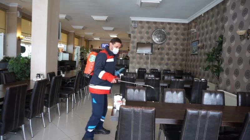 Vatandaşların daha sağlıklı bir ortamda hizmet alabilmesi için restoran, kafe ve kıraathanelerde dezenfeksiyon çalışması yapan ekipler, masaları, sandalyeleri, mutfakları dezenfekte ederek işletmelerin daha hijyenik bir ortamda hizmet vermeleri için detaylı bir çalışma gerçekleştirdi.