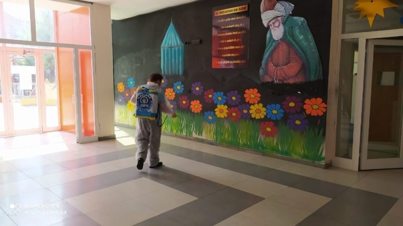 Pandemi tedbirleri kapsamında düzenli olarak gerçekleştirilen çalışmalara ilave olarak LGS sınavı öncesinde öğrencilerin sağlığını korumak amacıyla elle temas edebilecekleri sıralar, kapı kolları, masa, sandalyelerin yanı sıra, koridorlar, lavabolar ve okul bahçesi belediye ekipleri tarafından dezenfekte edildi.