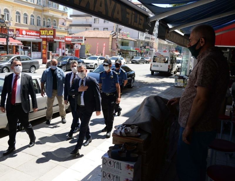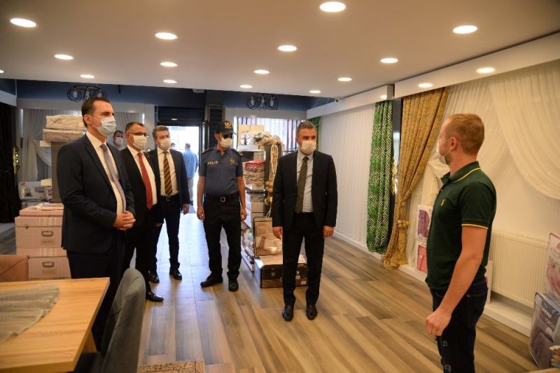 İlçede hem bu işin farkındalığını ön plana çıkardıklarını hem de denetimlerde bulunduklarını belirten Kaymakam Mehmet Yıldız, ‘‘İçişleri Bakanlığımızın yayımladığı genelge kapsamında tüm iş yerlerinde maske, mesafe ve hijyen kurallarına duyarlılığı bilinci tazelemeye çalışıyoruz. Temel olarak yapmamız gereken şeyler korona virüsle mücadele kapsamında alınması gereken kurallara eksiksiz uymak. İlçemizde son dönemlerde yükselişe geçen vaka sayılarını birlikte mücadele ederek kontrol altına alabiliriz. Artış trendini aşağı yöne çekmek içinde maske, mesafe, hijyen kurallarına azami derecede önem göstermemiz gerekmektedir’’ dedi.