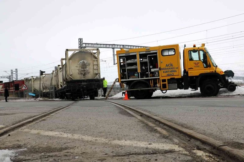 Sivas’ta yük treni raydan çıktı, son vagonun bir kısmı Sivas-Ankara karayolunda kaldı.