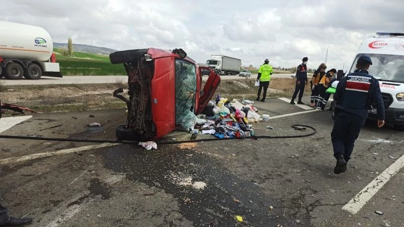 Kırıkkale’de refüje çarpan otomobilin takla atarak karşı şeride geçtiği trafik kazasında 7 kişi yaralandı.