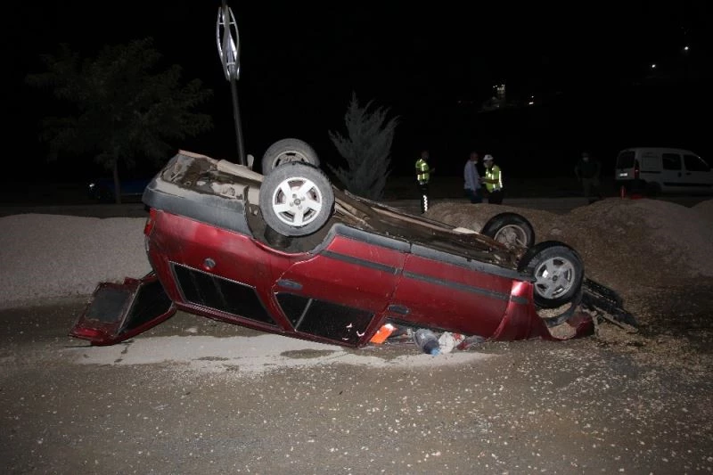 Refüje çarpan otomobil takla attı, sürücü yaralı kurtuldu