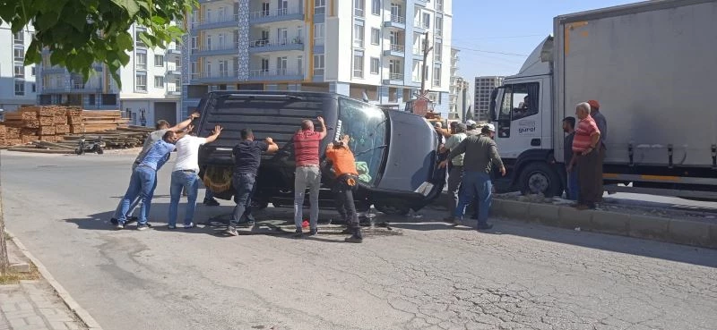 Refüje çarpıp yan yatan araçtaki iki kişiyi vatandaşlar çıkardı