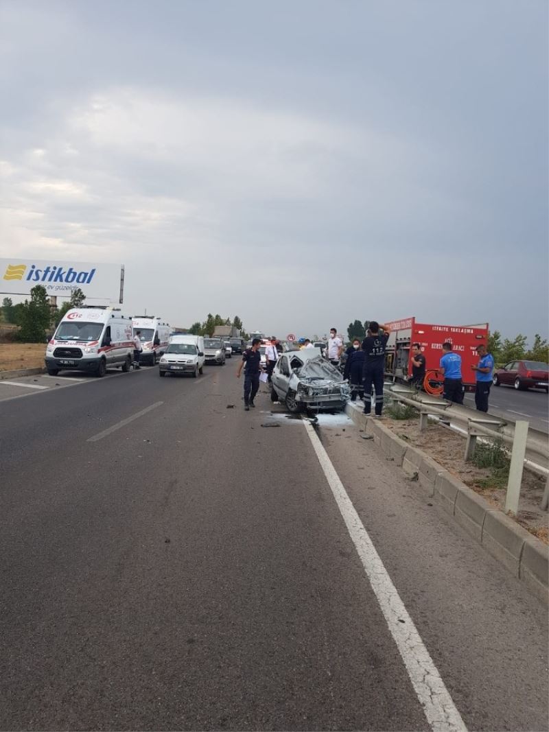 Kaza, Bursa-Balıkesir yolu üzerinde meydana geldi. Edinilen bilgiye göre, Suat Memiş (46) idaresindeki 16 AAN 875 plakalı otomobil, Bursa-Balıkesir kara yolunun 44. kilometresinde seyrederken sollama yapmak için sol şeride geçti. Sollama yaptığı esnada kontrolden çıkan otomobil önce orta refüje çarptı, daha sonra aynı istikamette seyreden V.Ş. idaresindeki 34 DF 4274 plakalı otobüse çarparak sürüklenmeye başladı.