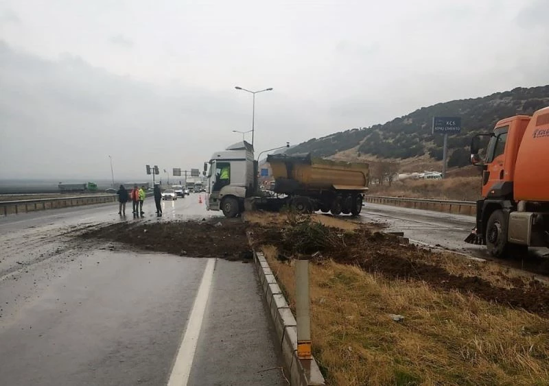 Kazaya karışan kamyon bulunduğu yerden kaldırıldı.