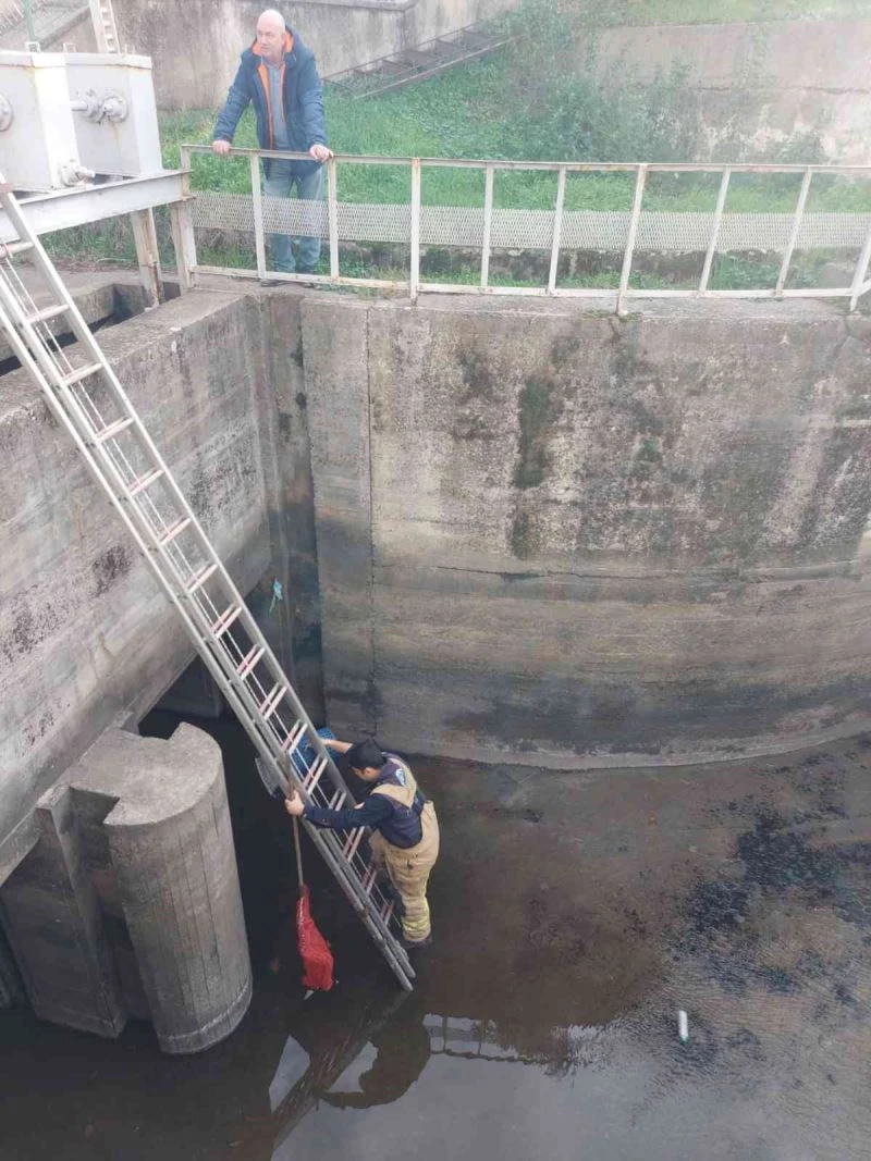7 metre boyundaki regülatöre merdiven dayayarak aşağı inen ekipler, kediyi mahsur kaldığı yerden vatandaşların meraklı gözleri eşliğinde bir torbanın içine alarak kurtardı. İtfaiye personeli tarafından beslenen kedi, daha sonra doğaya bırakıldı.