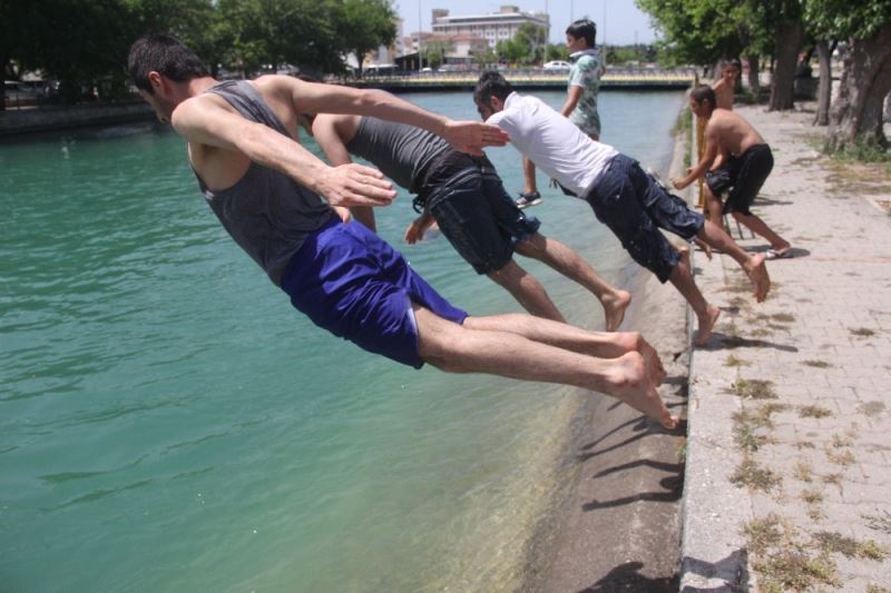 Sulama kanalının başka bir bölgesinde ise onlarca çocuk ve genç suya girerek rekor sıcaklıkta serinlemeye çalıştı. Çocuklar havanın çok sıcak olduğunu, evde bunaldıklarını ve havuzlar virüs nedeniyle kapalı olduğu için sulama kanalına geldiklerini söyledi.