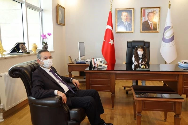 23 Nisan Ulusal Egemenlik ve Çocuk Bayramı’nın 101’inci yılına özel rektörlük makamında gerçekleştirilen devir teslim töreninde öğrencilerine Düriye Çetinceviz Anaokulu Müdürü Özal Özden ve öğretmen Züleyha Paçal eşlik etti. Rektörlük koltuğuna oturan anaokulu öğrencisi Asel Gönül, tüm çocukların 23 Nisan Ulusal Egemenlik ve Çocuk Bayramı’nı kutladı.