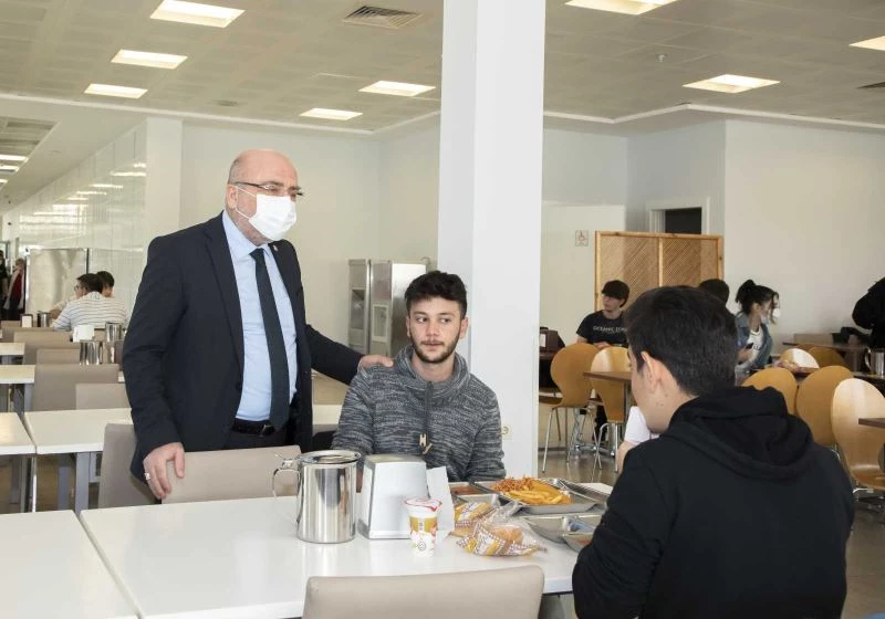 Rektör Karamustafa, öğrenci yemekhanesinde öğrencilerle yemek yedi