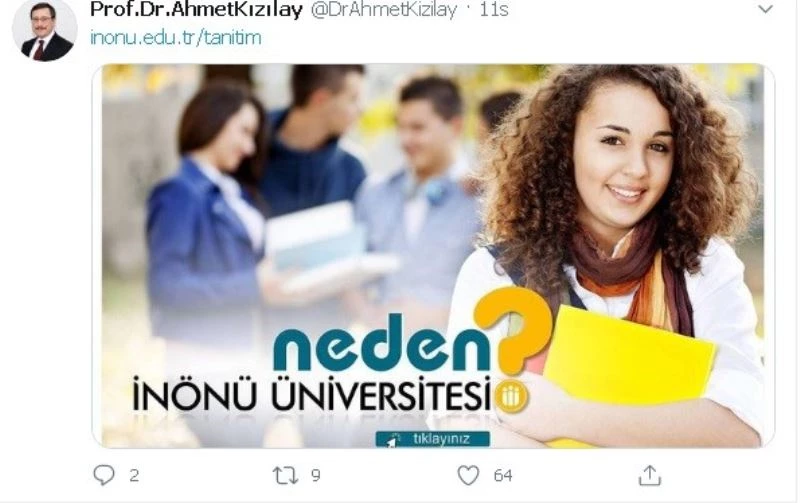 İnönü Üniversitesi Rektörü Prof. Dr. Ahmet Kızılay, 2020 - 2021 eğitim öğretim yılında yapılacak üniversite tercihleri konusunda sosyal medyada yaptığı açıklamada, İnönü Üniversitesi’ni tercih için birçok nedenler olduğunu belirtti.