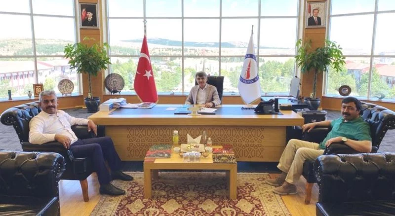 Rektörlük makamında sohbet şeklinde gerçekleşen görüşmede Rektör Kazım Uysal’a, Lisansüstü Eğitim Enstitüsü Müdürü Şahmurat Arık eşlik etti.