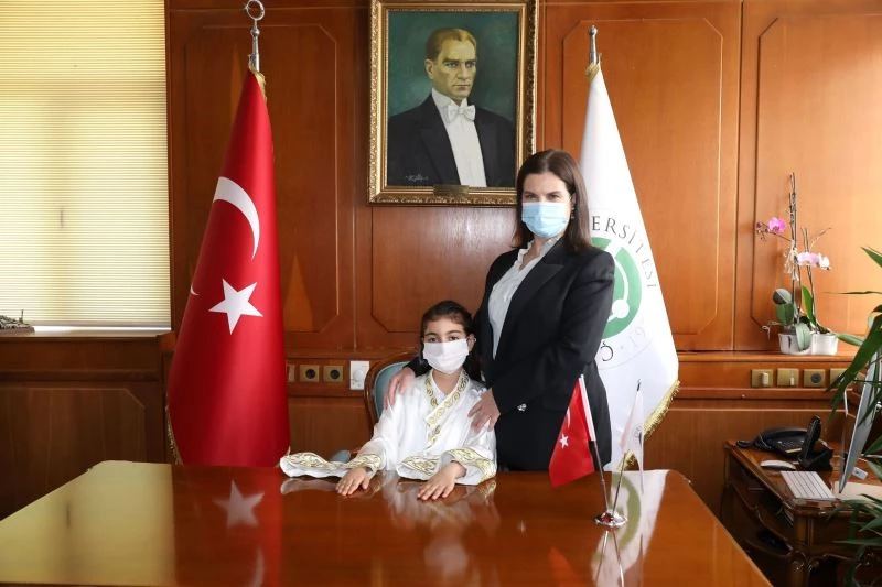 Çukurova Üniversitesi Prof. Dr. Meryem Tuncel, 23 Nisan Ulusal Egemenlik ve Çocuk Bayramı nedeniyle koltuğunu üç kız çocuğuna devretti. “Bu özel günde tüm çocuklarımızı sevgi ile kucaklıyorum” diyen Prof. Dr. Tuncel, çocukların barış dolu bir dünyada yaşamaları ve sağlıklı, mutlu bir gelecekleri olması temennisinde bulundu.