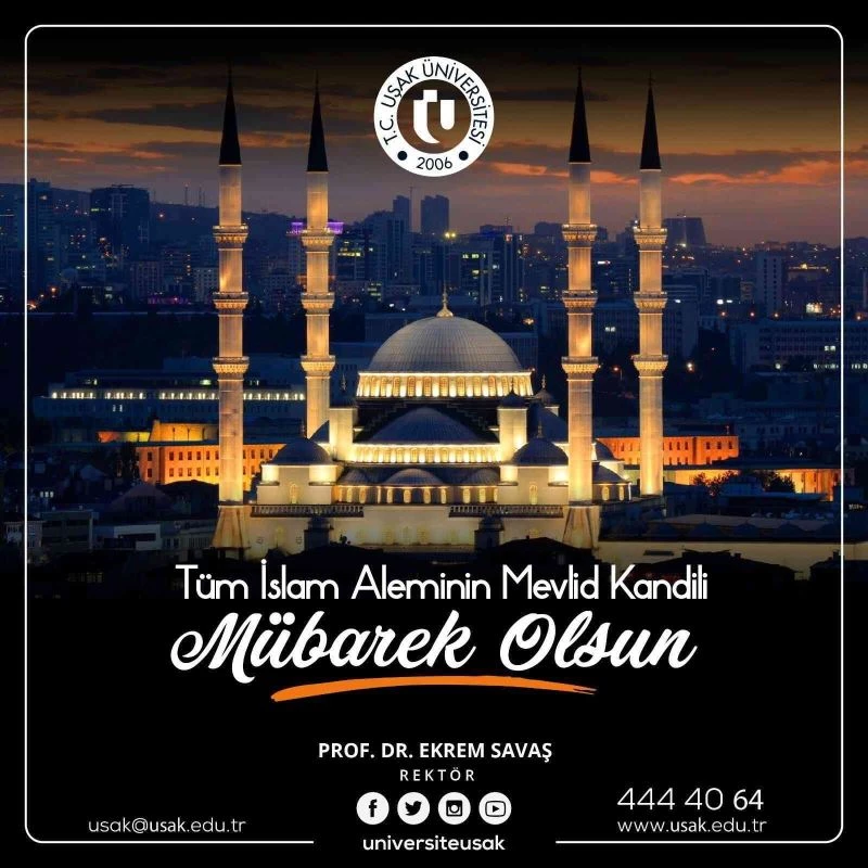 Uşak Üniversitesi Rektörü Prof Dr. Ekrem Savaş, Mevlid Kandili dolayısıyla kutlama mesajı yayımladı. Savaş, kutlama mesajında “Mevlid Kandilinizi kutluyor, bu mübarek gecenin milletimiz, İslam alemi ve tüm insanlık için hayırlara vesile olmasını Cenab-ı Allah’tan niyaz ediyorum” ifadelerine yer verdi.