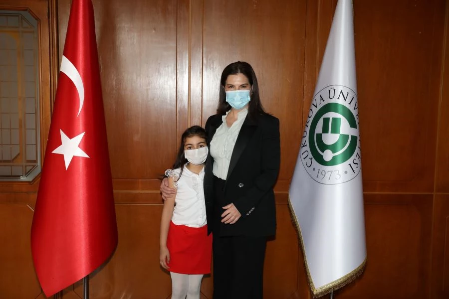 23 Nisan Ulusal Egemenlik ve Çocuk Bayramı tüm dünyada olduğu gibi Çukurova Üniversitesinde de pandemi nedeniyle kısıtlanmış etkinliklerle kutlandı. Gün dolayısıyla Rektör Prof. Dr. Meryem Tuncel makamında Adana Çocuk Evleri Sitesi Müdürlüğü’nden Cemre Özlem Bilir, Sakine Sultan Ceylan ile Rektör Prof. Dr. Meryem Tuncel’in adaşı Meryem Ekin Kanber’i ağırladı.