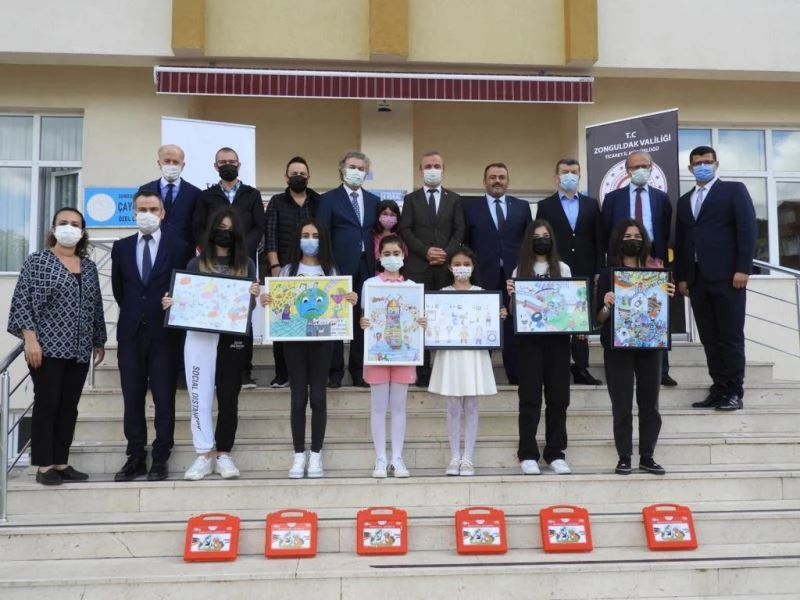 Zonguldak İl Ticaret Müdürü İsmail Maden, Çaycuma İlçe Milli Eğitim Müdürü İsmail Baş ve Çaycuma Ticaret ve Sanayi Odası Yönetim Kurulu Başkanı Zekai Kamitoğlu öğrencilere katılım belgelerini, çerçevelenmiş yarışma katılım resimlerini ve boya takımlarını hediye etti. Zonguldak İl Birincisi Çaycuma Koleji Özel Çaycuma Ortaokulu 8.sınıf öğrencisi Arya Sert’e Çaycuma TSO Yönetim Kurulu Başkanı Zekai Kamitoğlu tarafından akıllı saat hediye edildi. İlçe Milli Eğitim Müdürü İsmail Baş “ Zonguldak İl Birincisi Arya Sert ve yarışmaya katılım sağlayan Bürde Bostancı, Dila Özcan, Eylül Tuba Başoğlu, Tuana Cura ve Şevval Gedik’i ve onları yetiştiren öğretmenlerimizi tebrik eder, başarılarının devamını dileriz ” dedi.