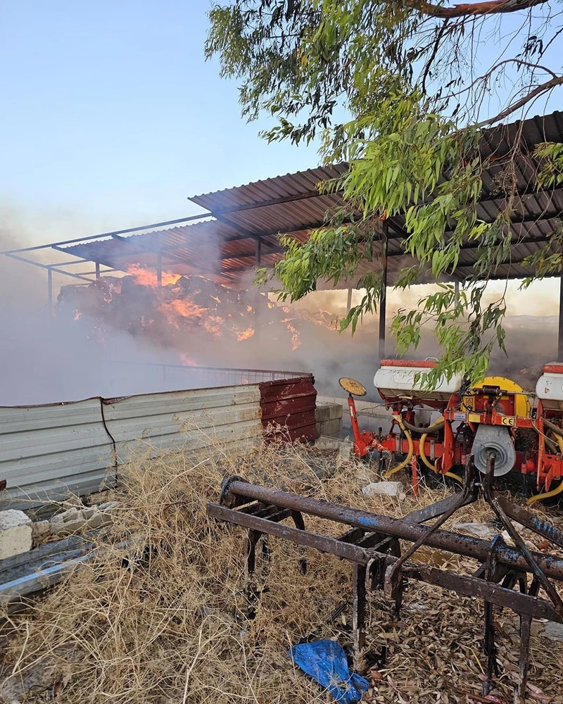 Üçtepe Mahallesi'ndeki bir samanlıkta henüz belirlenemeyen nedenle yangın çıktı.