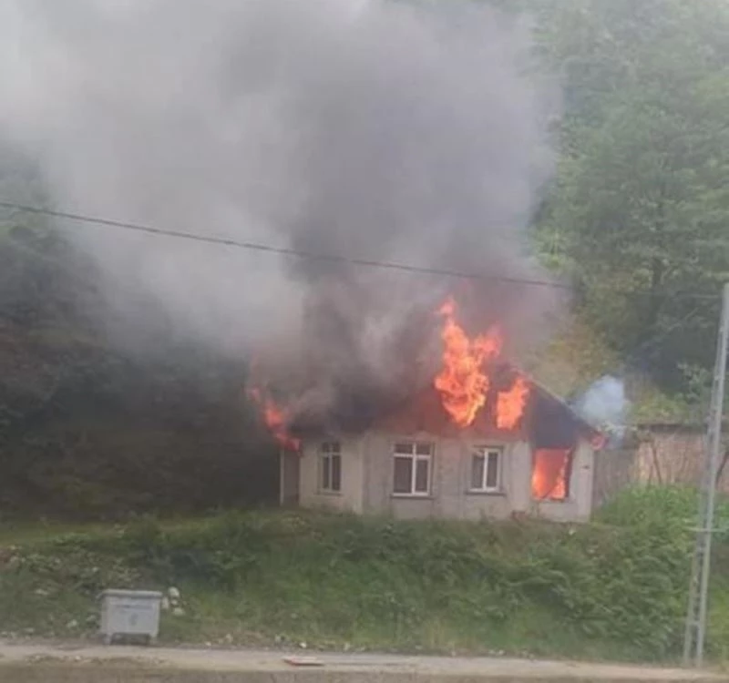 Rize’nin Güneysu ilçesinde çıkan yangında bir ev yanarak kül oldu.