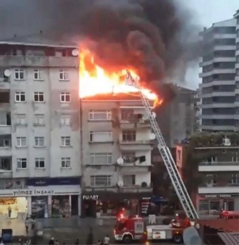 Rize’de binanın çatısında çıkan yangın paniğe neden oldu