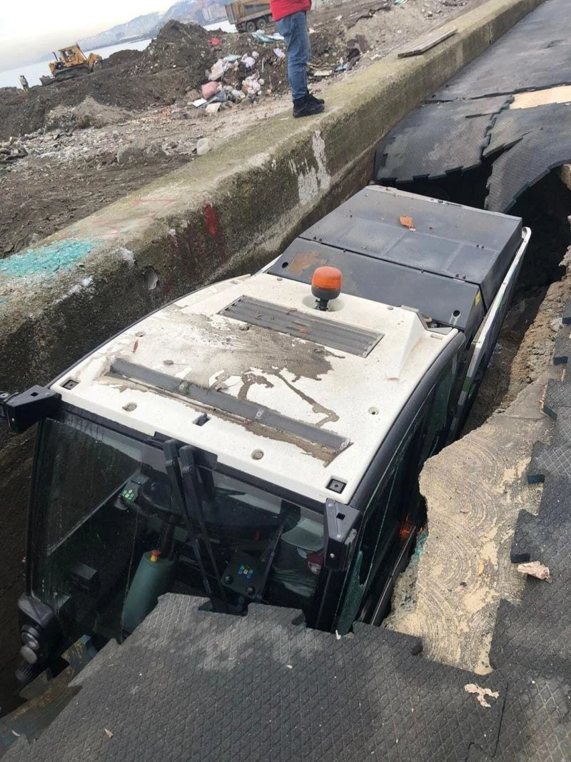 Olay merkez Ekrem Orhon mahallesi, sahil mevkii yürüyüş bandında meydana geldi. Rize Belediyesi’ne ait süpürme aracı yürüyüş bandını süpürdüğü sırada zeminde çöküntü oluştu. Oluşan çöküntünün ardından temizlik aracı olduğu yerde zeminin içerisine girdi. Altı dolgu olan sahilde oluşan göçüğe düşen aracın şoförü ise araçtan camı kırarak çıkabildi. Göçüğün oluştuğu bölgede önce sahil esnafı daha sonra güvenlik güçleri tarafından güvenlik şeridi çekilerek vatandaşlar uzaklaştırıldı. Sürücünün yara almadığı kazada olay yerine vinç çağırıldı. Vinçe paletler vasıtasıyla bağlanan süpürme aracı düştüğü yerden çıkartıldı.