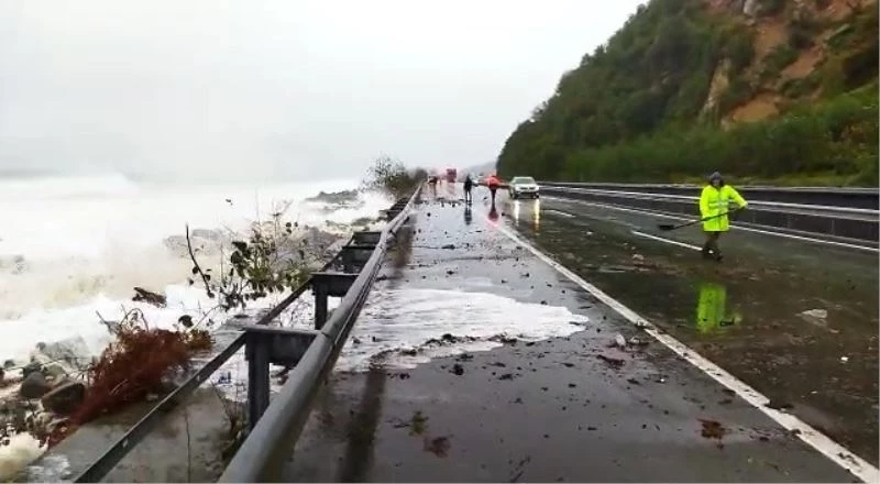 Rize’de gece saatlerinden itibaren etkili olan fırtına nedeniyle denizde oluşan dev dalgalar Karadeniz Sahil Yolu’nda ulaşımda aksamalara neden oldu.