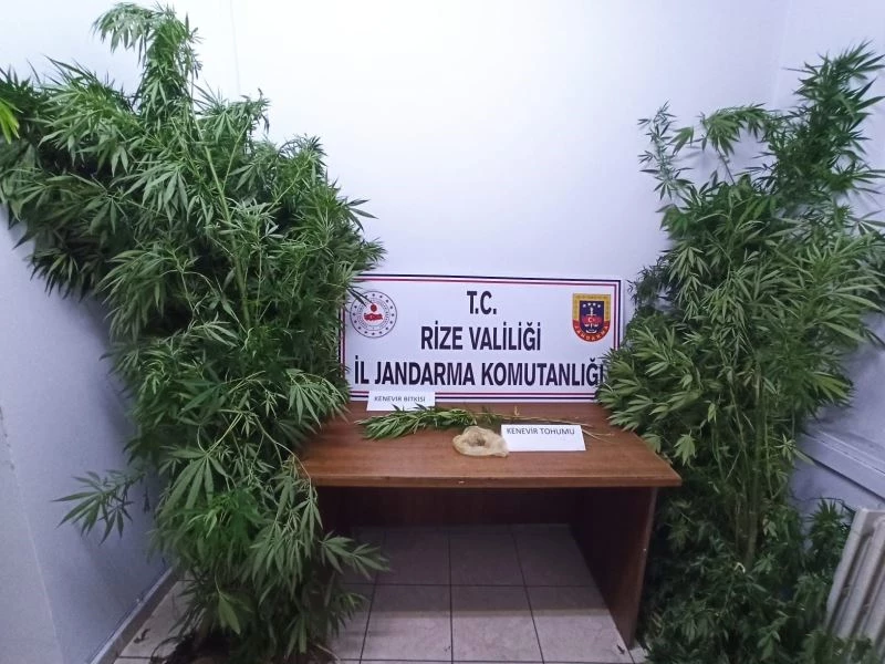 Rize’de jandarma ekiplerinin bir iş yerine düzenlediği baskında 20 kök kenevir bitkisi ele geçirildi.