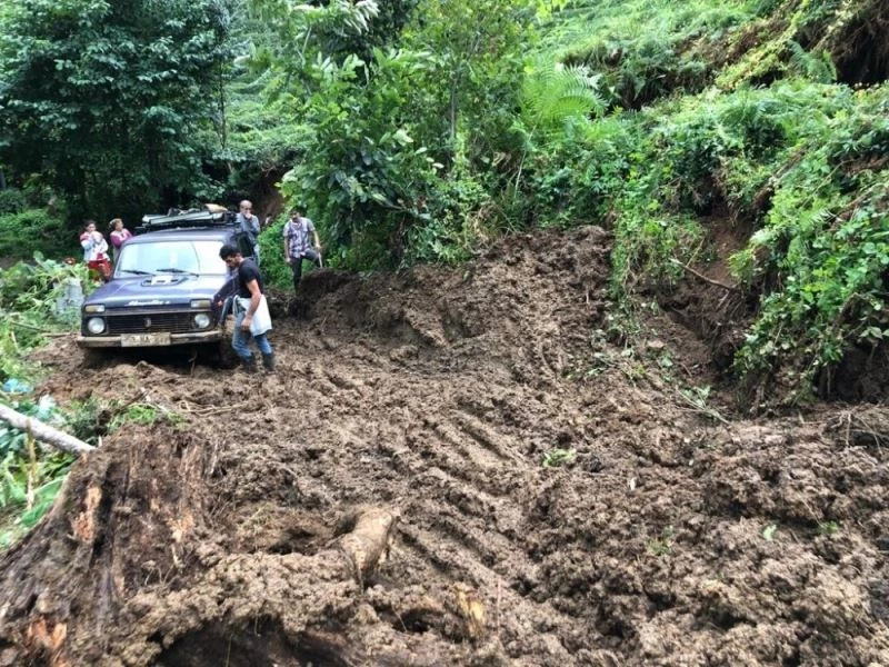 Rize’nin Pazar ilçesi Elmalık Köyü’nde şiddetli yağışlardan dolayı toprak kayması meydana geldi. Heyelanda 2 araç tepeden gelen toprak ve ağaçların altında kaldı.