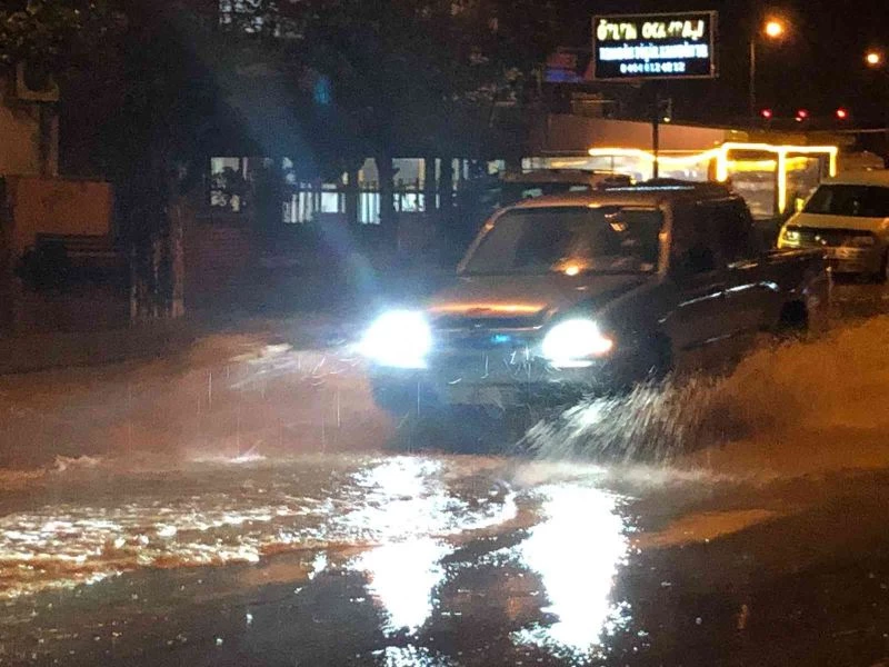 Rize’nin Pazar ilçesinde etkili olan şiddetli sağanak yağışta caddelerde su birikintileri oluşurken, bazı iş yerlerinde de su baskınları yaşandı.