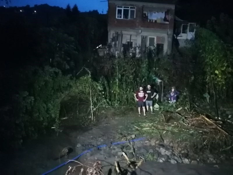Rize’de taşan dere suları nedeniyle evlerinde mahsur kalan 3’ü çocuk 7 kişilik aileyi AFAD ekipleri kurtardı