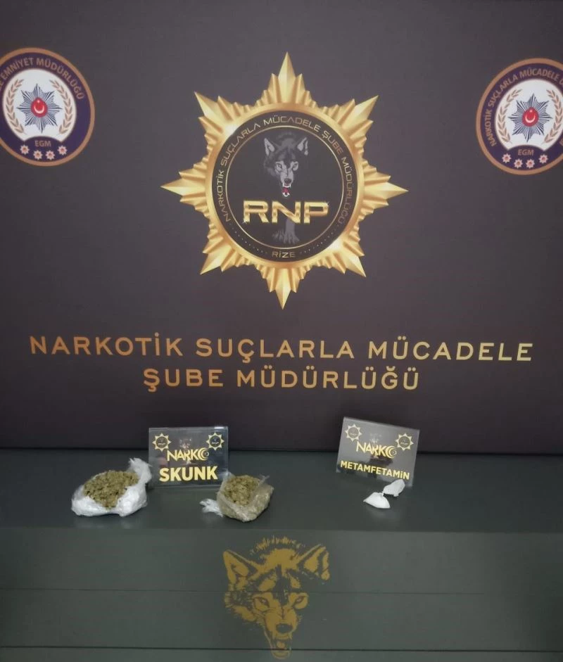 Rize Narkotik Suçlarla Mücadele Şube Müdürlüğü ekiplerince 17 Mart’ta şüphe üzerine durdurulan bir şahsın yapılan üst aramasında poşet içerisinde folyoya sarılmış halde iki parça halinde toplam 248,02 gram esrar ve bir parça halinde 19,29 gram metamfetamin maddesi ele geçirildi. Gözaltına alınan E.B., emniyetteki işlemlerinin ardından çıkarıldığı mahkemece tutuklanarak cezaevine gönderildi.