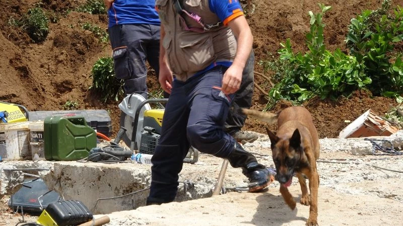 Rize’de meydana gelen sel ve heyelanda yıkılan 3 katlı binadaki arama kurtarma çalışmalarına AFAD’ın canlı arama köpekleri Kito ve Abrek de destek veriyor.