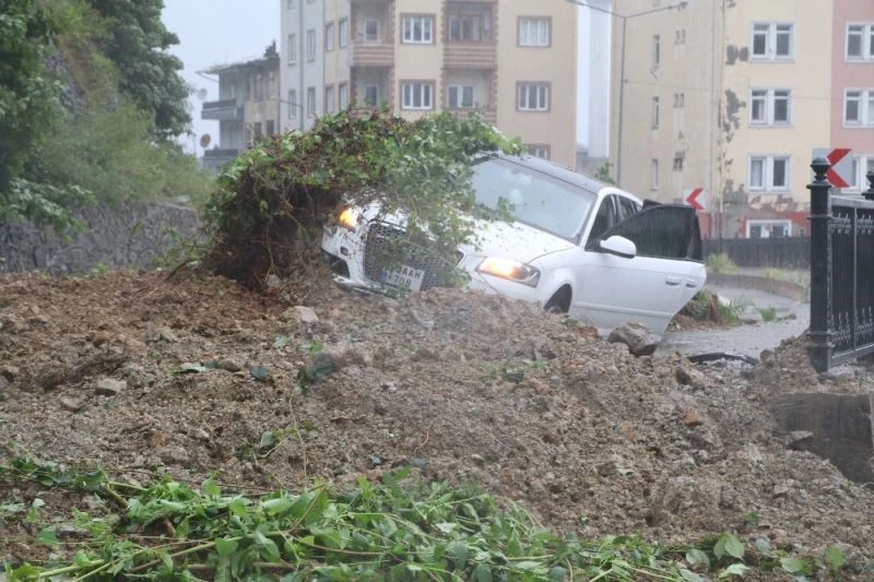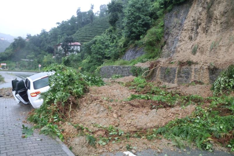 Rize’deki şiddetli yağış sonucu oluşan heyelanda bir araç toprak altında kaldı