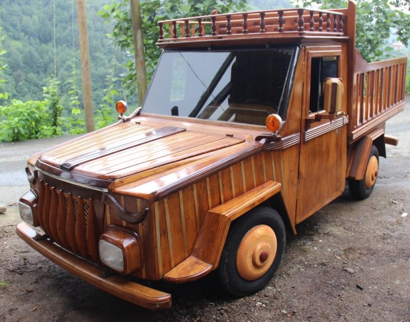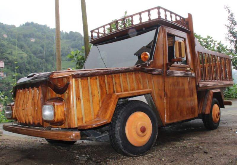 Rizeli mobilya ustası Metin Tercan pratik zekasını kullandı ve çürümeye yüz tutan aracını ustalığı ile değerlendirdi. Mobilya yapımındaki ustalığını konuşturarak kendine ahşaptan kamyonet yapan Tercan, "Araca henüz isim koymadım. Cumhurbaşkanımız Recep Tayyip Erdoğan’ın vereceği bir ismi seve seve aracıma koyabilirim" dedi.