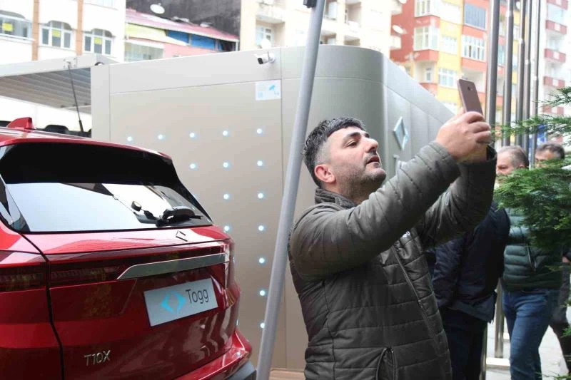Türkiye’nin yerli ve milli arabası Togg, Rize’de vatandaşların beğenisine sunuldu. Togg’u incelemek isteyen vatandaşlar uzun kuyruklar oluşturdu.