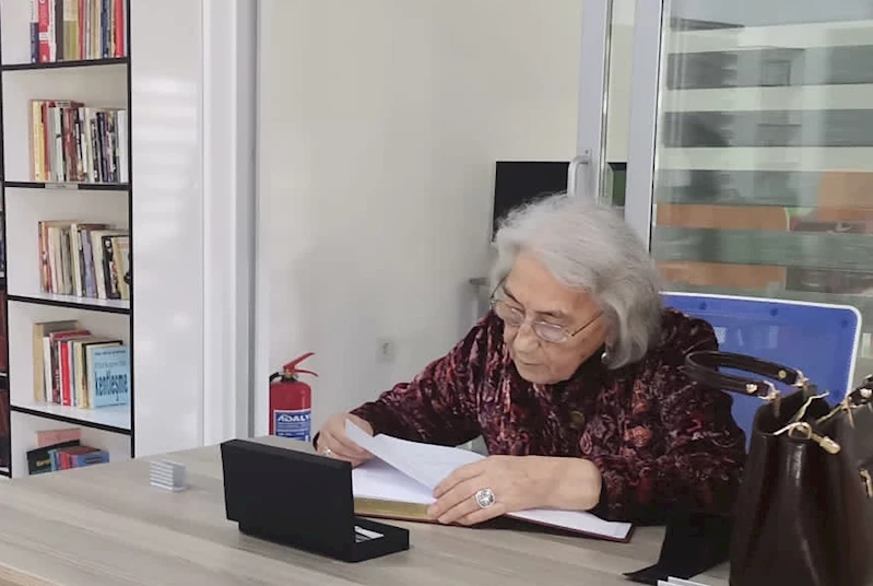 Kırgızistan Kültür Günleri kapsamında Antalya'da bulunan Aytmatova, kütüphanedeki anı defterini de imzaladı.