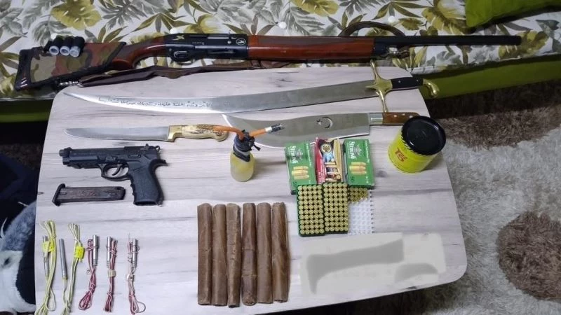 Ruhsatsız silah için gittiler, patlayıcı madde buldular