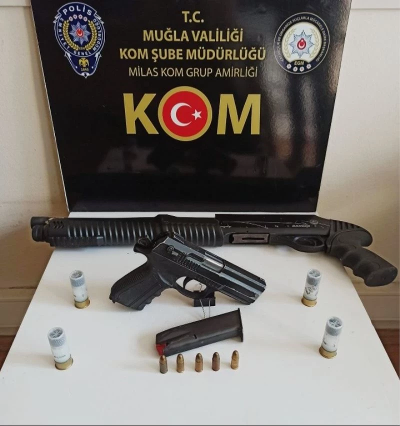 Edinilen bilgiye göre, Milas KOM Grup Amirliği Ekipleri tarafından Aydınlıkevler Mahallesinde bir adreste yapılan aramada, 1 adet ruhsatsız tabanca, bu tabancaya ait fişekler, 1 adet pompalı tüfek ve bu tüfeğe ait fişekler ele geçirildi. Ç.K. isimli şahıs hakkında Ruhsatsız Silah Bulundurmaktan adli işlem başlatıldı.