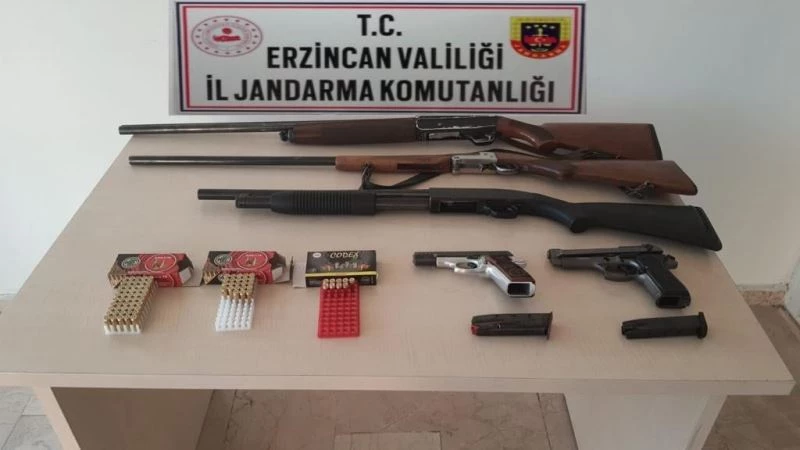 Erzincan İl Jandarma Komutanlığı ekiplerince, Refahiye ilçesinde bir şahsın evinde ruhsatsız tabanca ve av tüfeği bulundurduğu duyumu üzerine çalışma başlattı. Çalışmalar kapsamında, şüpheli İ.K’ya ait evde arama yapan ekipler, 1 ruhsatsız Smith Wesson tabanca, 1 Blow F92 marka kurusıkı tabanca, 3 ruhsatsız av tüfeği ile 82 tabanca fişeği ele geçirdi. Silah ve fişeklere el koyan jandarma ekipleri, ruhsatsız tabanca ve av tüfekleri bulunduran İ.K’ya her tüfek için ayrı ayrı 944 lira olmak üzere toplamda 2 bin 832 lira idari para cezası uyguladı. Gözaltına alınan İ.K, jandarmadaki işlemlerin ardından çıkarıldığı mahkemede tutuksuz yargılanmak üzere adli kontrol şartı ile serbest bırakıldı.