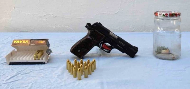 Yapılan aramada, ruhsatsız tabanca, 25 adet fişek, bir miktar kubar esrar ve içilmiş kubar esrar sarılı sigara ele geçirildi Olayla ile ilgili 3 şüpheli gözaltına alınarak haklarında adli işlem başlatıldığı açıklandı.