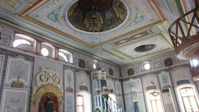 Rum ustalar ve Bulgar işçilerin çalıştığı Burhaniye ilçesindeki Şahinler Cami, farklı duvar ve tavan süslemeleriyle dikkat çekiyor.