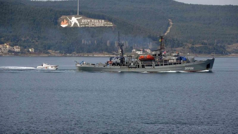 Ege Denizi’nden saat 11.10’da Çanakkale Boğazı’na giriş yapan Rus Donanması’nın Karadeniz Filosuna bağlı askeri kurtarma gemisi ‘Epron’, saat 12.30 sıralarında Çanakkale önlerinde oldu. Kilitbahir Kalesi ve ‘Dur Yolcu’ sembolü önünden geçen savaş gemisi, boğazın manevrası en güç noktası olan Nara Burnu’nu döndükten sonra Marmara Denizi’ne doğru yol aldı.