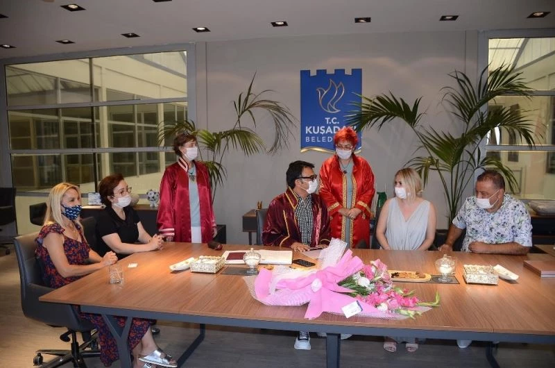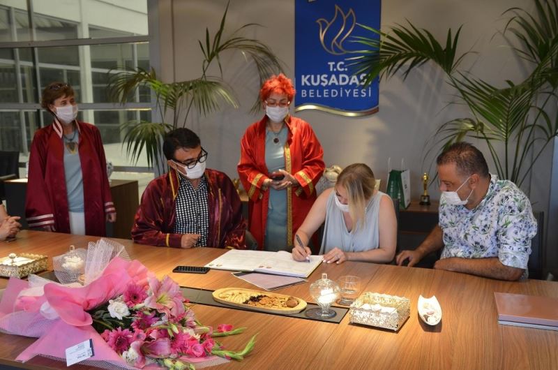 Dünya evine girmek için Kuşadası Belediyesi’ne müracaat eden Rusya doğumlu Dina Zakırova ile Hasan Hakan Acıtaş’ın nikahı başkanlık makamında kıyıldı. Çiftin nikah akdini Belediye Başkan vekili Tibet Özer gerçekleştirdi.