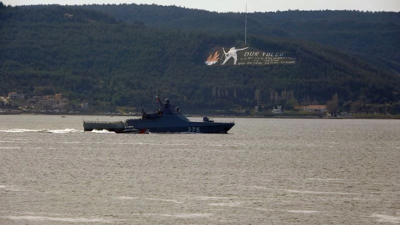Rus Donanması’na ait 375 borda numaralı ‘Dmitry Rogachev’ isimli savaş gemisi, Çanakkale Boğazı’ndan geçerek Marmara Denizi’ne doğru yol aldı.