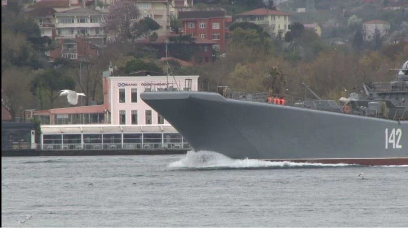 Ukrayna ile arasında yaşanan gerilimde yeni bir aşamaya gelinmesi sonrasında savaş gemilerini Karadeniz’e çekme kararı alan Rusya’nın 142 borda numaralı gemisi “Novocherkassk” İstanbul Boğazı’ndan geçti. Geminin geçişine sahil güvenlik unsuru eşlik ederken, mürettebatın ise güvertede sahili izlediği görüldü.